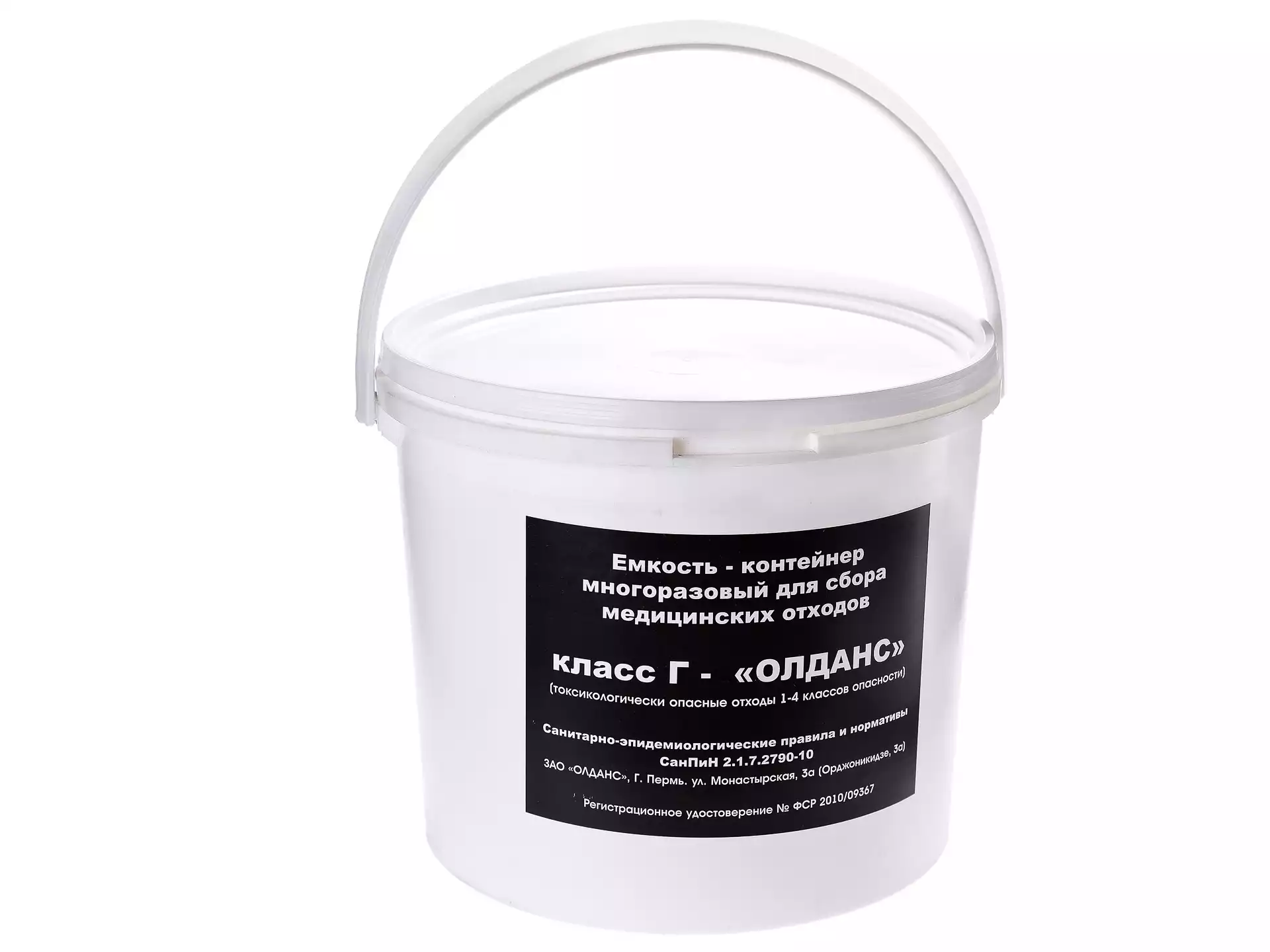 Емкость-контейнер для сбора медицинских отходов (этикетка - класс Г), объем 5,0л, ведро, цвет белый, многоразовый, ОЛДАНС (РОССИЯ)