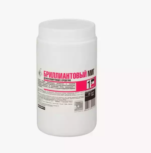 Бриллиантовый миг + , объем 1 кг, хлорсодержащее средство в виде гранул, Гигиена-Мед ЦП (РОССИЯ)