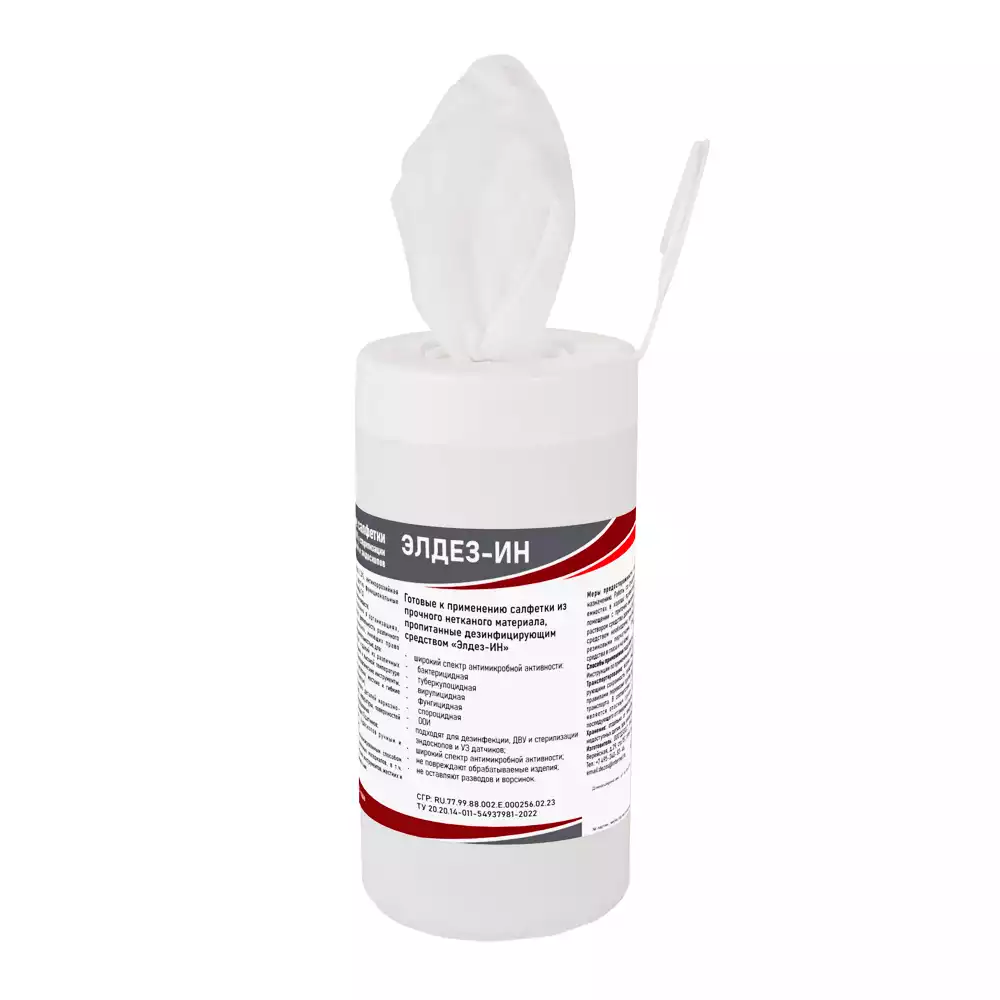 Салфетки "Элдез-ИН", дезинфицирующие, размер 12*18см, в банке 60шт, готовые к применению, Рудез (РОССИЯ)