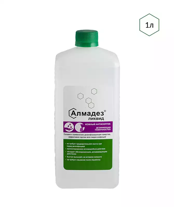 Алмадез - Ликвид, объем 1,0л, антисептик и дезинфектант для поверхностей (готовый раствор), Базовая дезинфекция
