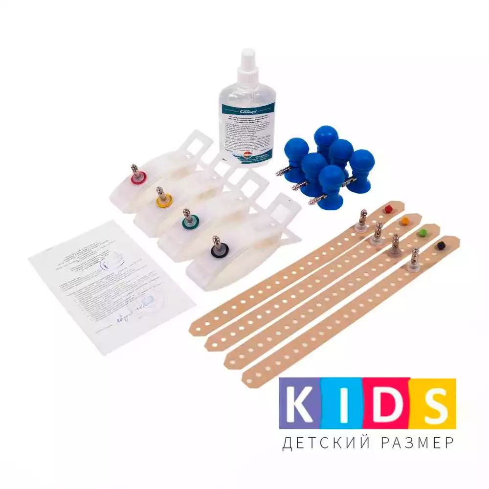 Электроды для ЭКГ (набор) грудные с винтом и зажимом + прищепки, детские (от грудного возраста до 10лет), многоразовые, Инструмент (РОССИЯ)