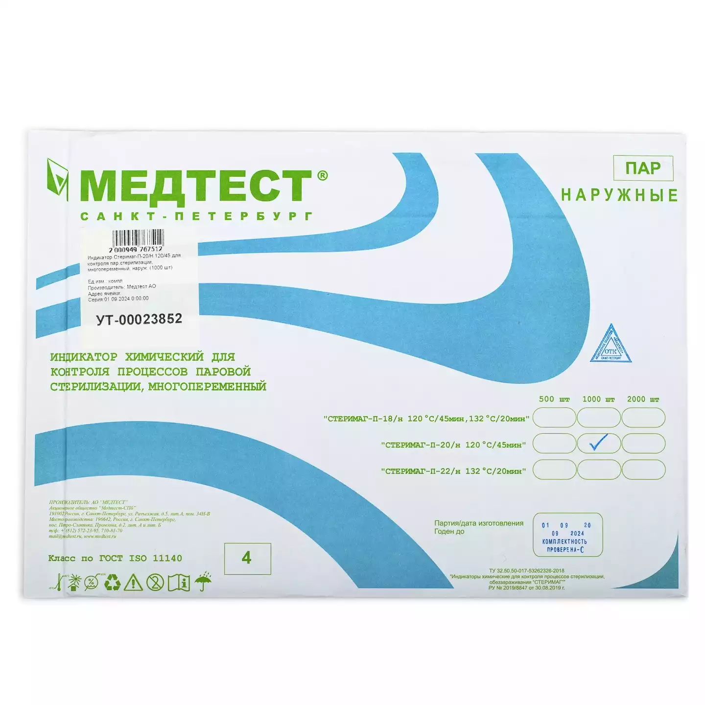 Индикатор стерилизации МедИс 132/20, класс 4, упаковка 2000 тестов, без журнала, Винар НПФ (РОССИЯ)