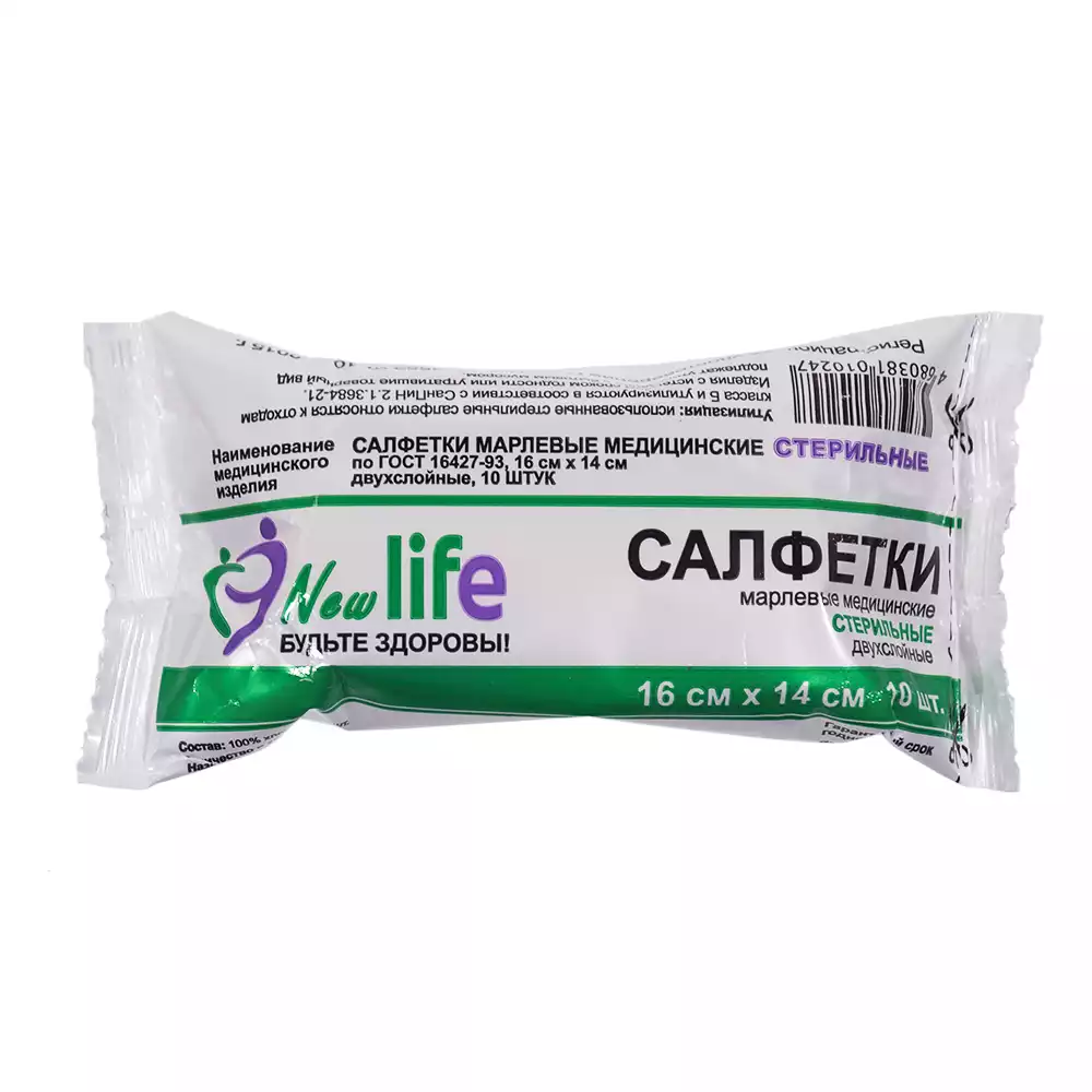 Салфетка марлевая №10, 2-х слойная, размер 16*14см Лайф, плотность 30г/м2, стерильная, Навтекс ХБК (РОССИЯ)
