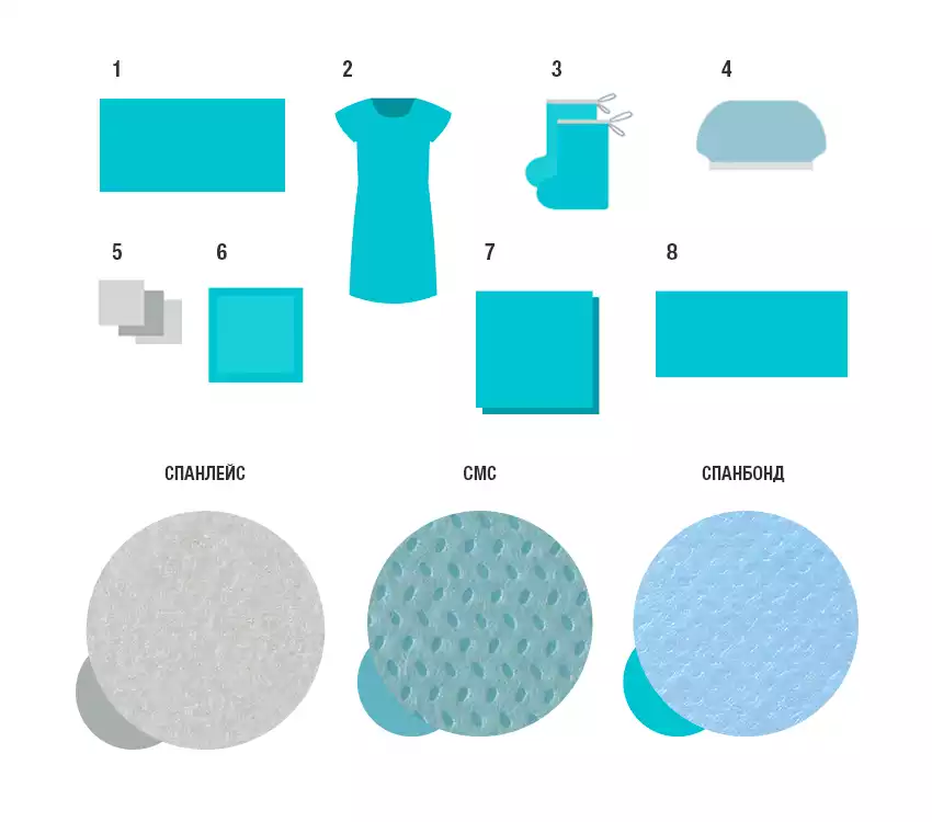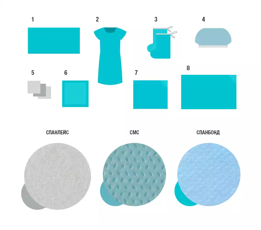 Комплект одежды хирургический Евростандарт, №2, смс 35г/м2, стерильный, Волга Медикал НПП (РОССИЯ)