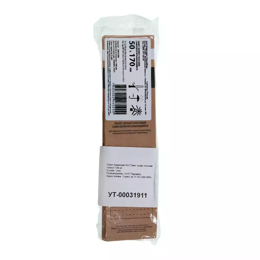Пакет ТерраМед, размер 50*170мм, бумажный, крафт, самоклеющийся, упаковка 100шт, ООО Террамед (РОССИЯ)