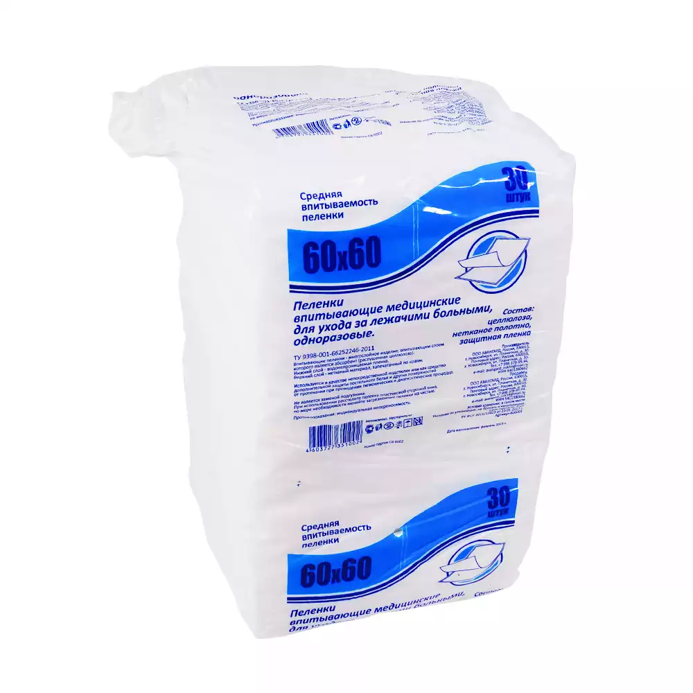Пеленка впитывающая, размер 60*60см, многослойная, нестерильная, Авангард (РОССИЯ)