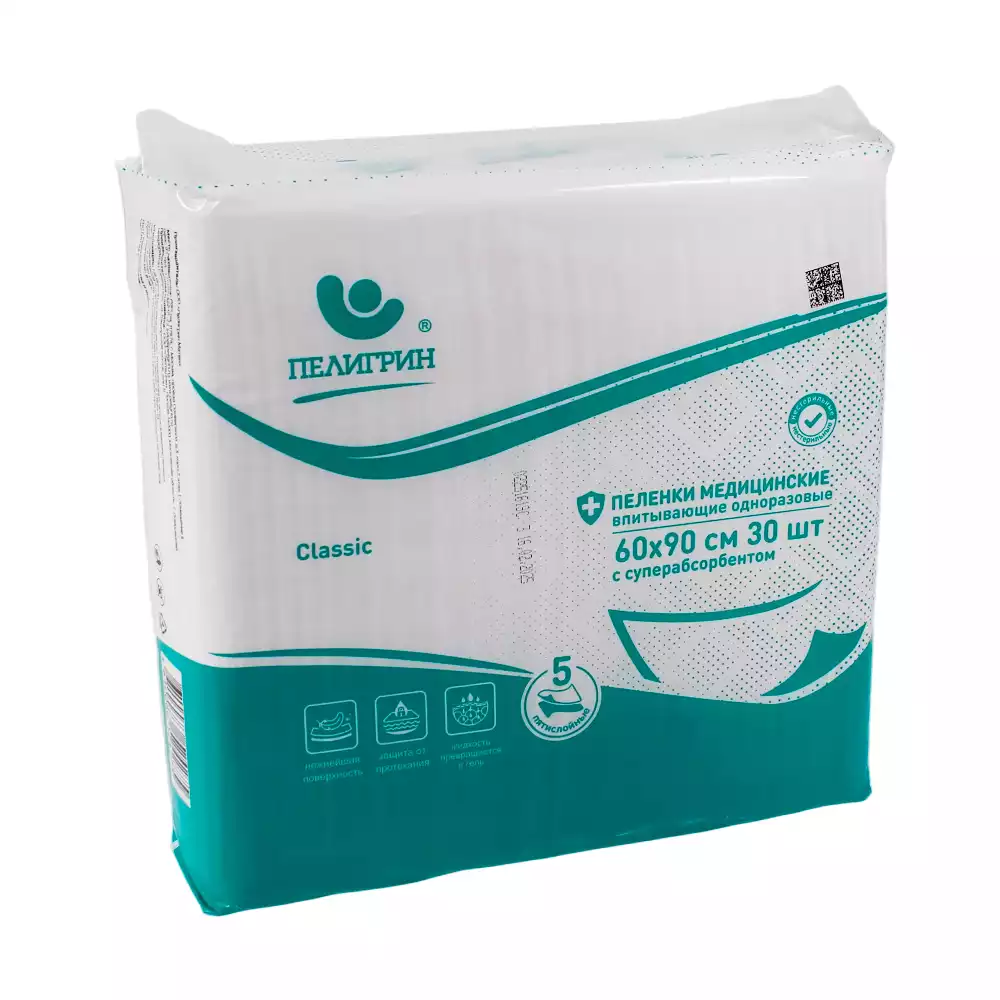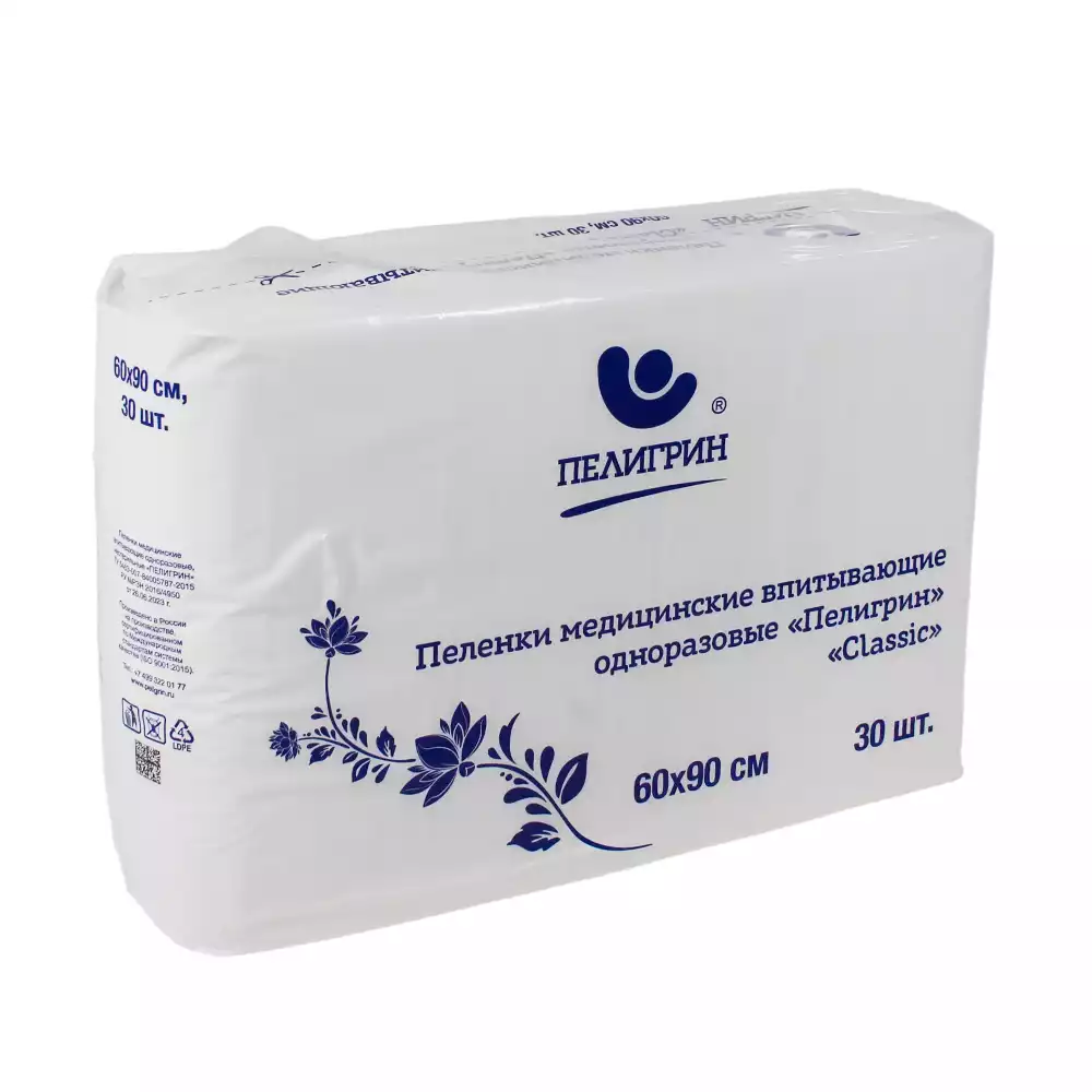 Пеленки медицинские впитывающие одноразовые , нестерильные "Пелигрин", "Classic" 60х60 см, 30шт/упак, Пелигрин Матен