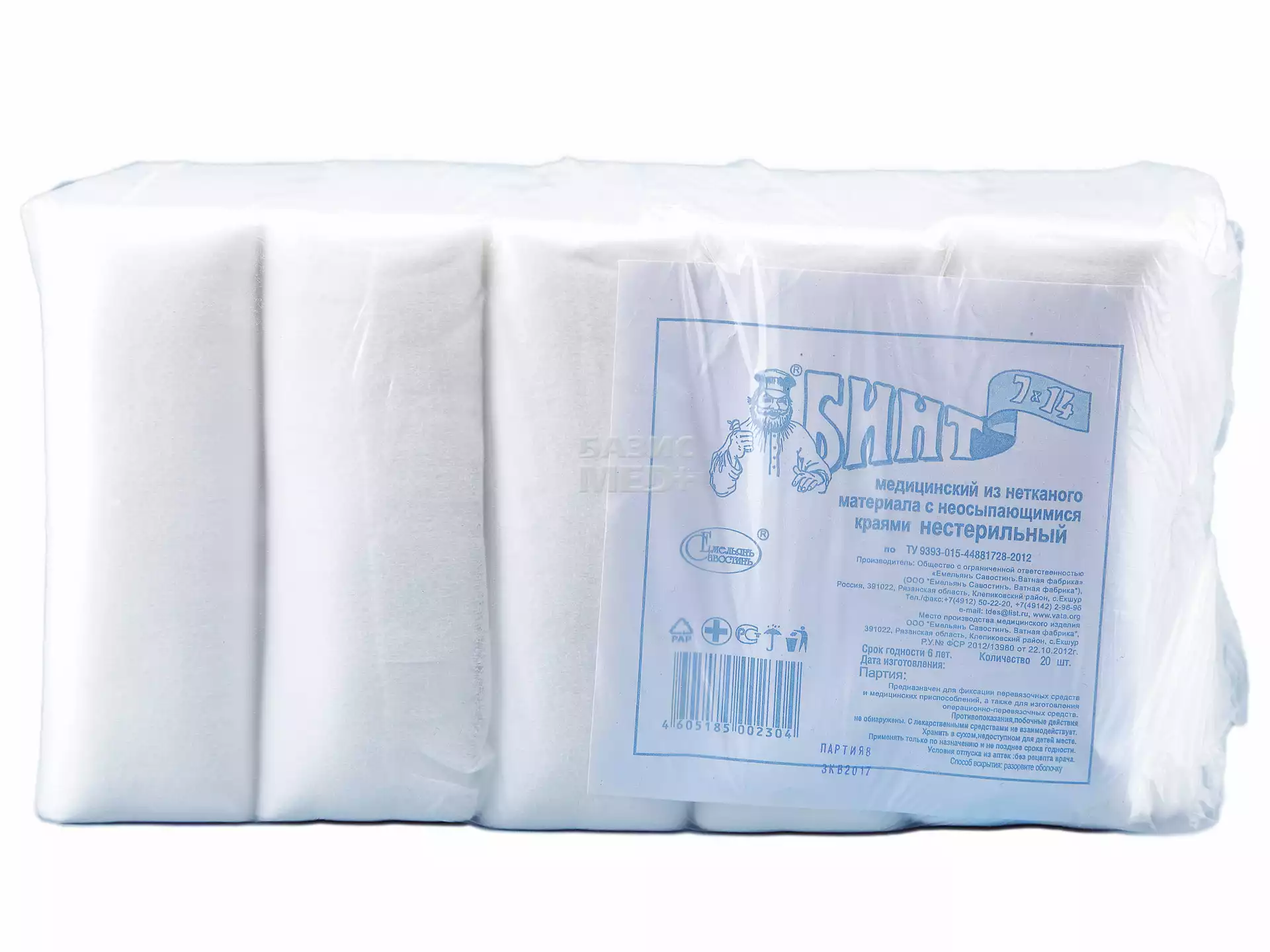 Бинт нетканный, размер 7м*14см (полиэфир 70% + вискоза 30%) нестерильный, групп.упаковка, Емельянъ Савостинъ ВФ (РОССИЯ), 20 шт