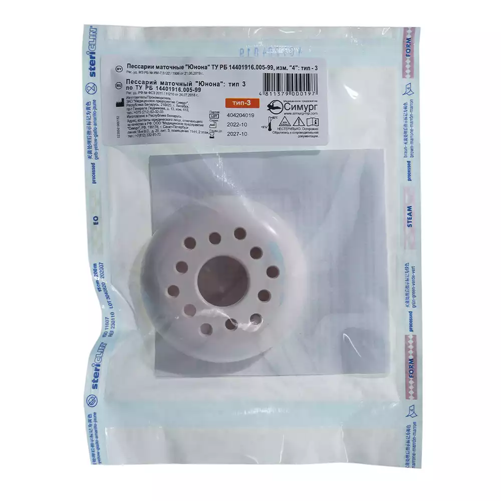 Гипоаллергенный материал с высокой биосовместимостью, устойчивый к дезинфицирующим растворам. Силиконовые пессарии можно стерилизовать автоклавированием при температуре 121°С.