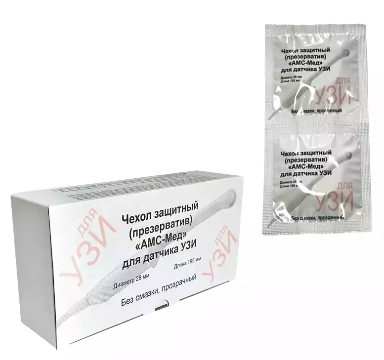 Чехол защитный (презерватив) "АМС-Мед" для датчика УЗИ модель 1 (длина 195 мм, диаметр 28 мм.) в полиэтиленовом пакете, ООО АМС-Мед (РОССИЯ), 100 шт