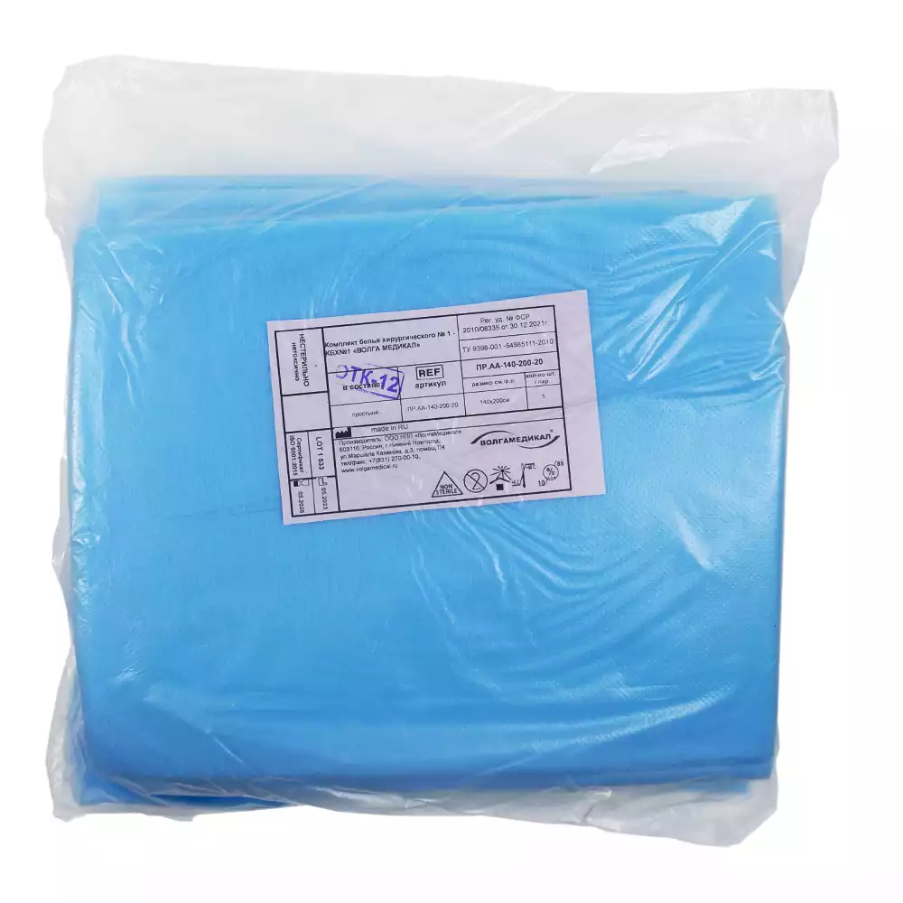 Простыня 70х80см, СМС 40г/м2 + ламинат, хирургическая, стерильная, голубая, Волга Медикал НПП (РОССИЯ)