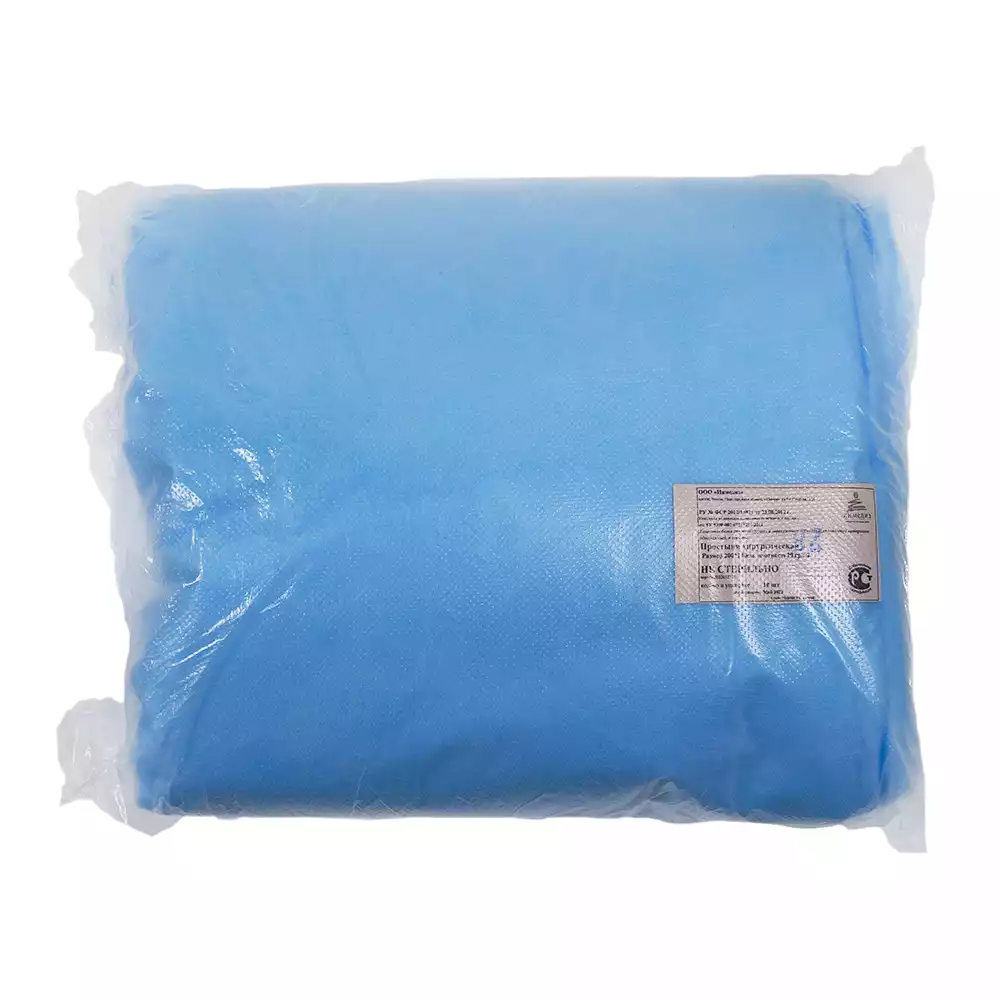 Простыня 140*200см, материал Спанбонд 20г/м2, нестерильная, голубая, Волга Медикал НПП (РОССИЯ)