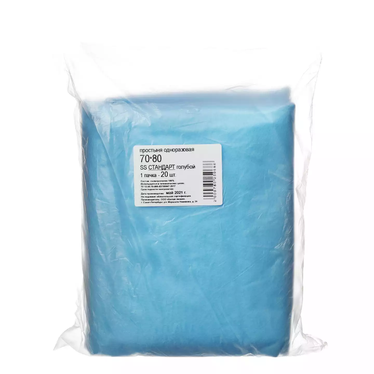 Простыня 70*80см, материал СМС 20г/м2, нестерильная, голубая, Волга Медикал НПП (РОССИЯ)
