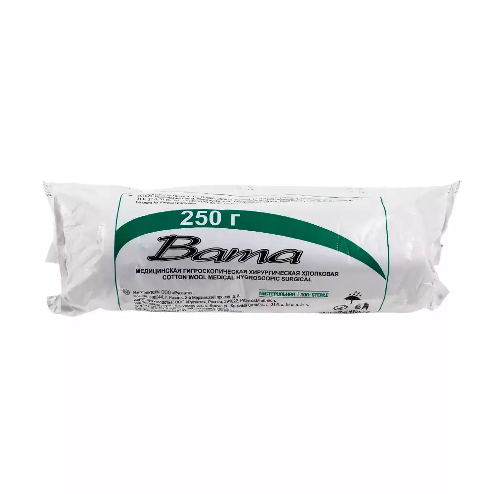 Вата 250,0г медицинская хирургическая нестерильная, РусВата (РОССИЯ), 50 шт