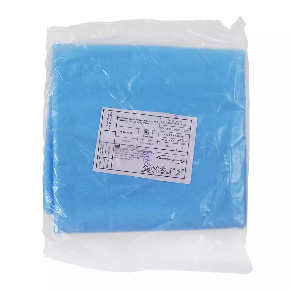 Салфетка 60*60см, материал СМС 25г/м2, нестерильная, голубая, Волга Медикал НПП (РОССИЯ)