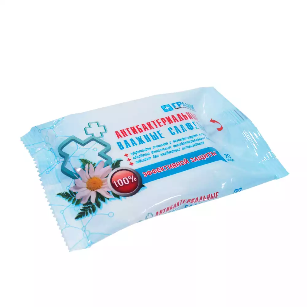 Салфетки влажные с антибактериальным эффектом, размер 15*15см, упаковка 20шт, Грани (РОССИЯ)