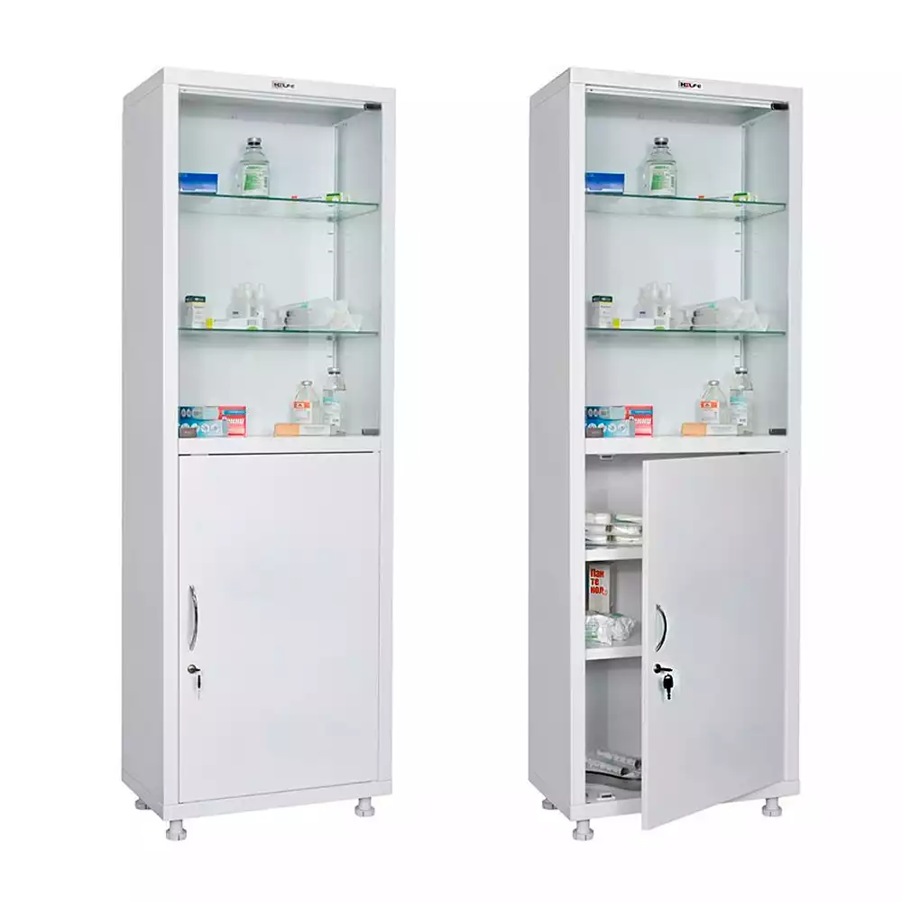 Шкаф медицинский ШМ-2.301-Айболит, металлический, для медикаментов (корпус белый, фасад белый), Айболит-2000