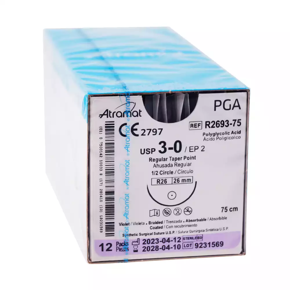 Атрамат (ATRAMAT PGA) EP2 (3/0), длина 75см, игла колющая, 1/2 окружности 26мм, фиолетовый, упаковка 12шт, R2693-75 (аналог Викрил W9120)