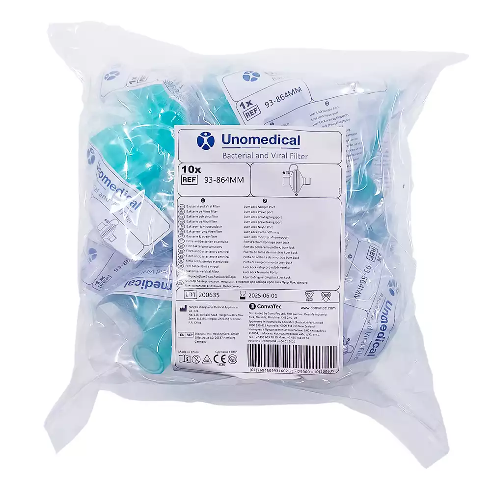 Предназначен для удерживания вирусов и бактерий, а также микрочастиц, содержащихся во вдыхаемом или выдыхаемом пациентом воздухе в процессе ИВЛ, при подаче газо-наркотической смеси. Изделие предназначено только для одноразового использования. Фильтрующая поверхность: электростатическая мембрана. "Мертвое" пространство – 21 мл. Эффективность бактериальной фильтрации – не менее 99,9999%. Эффективность вирусной фильтрации – не менее 99,9999%. Эффективность при дыхательном объеме - от 90 до 1500 мл. Вес – 25 г. Коннекторы стандартные: 22ммF/15ммM – 22ммM/15ммF в соответствии с EN ISO 5356