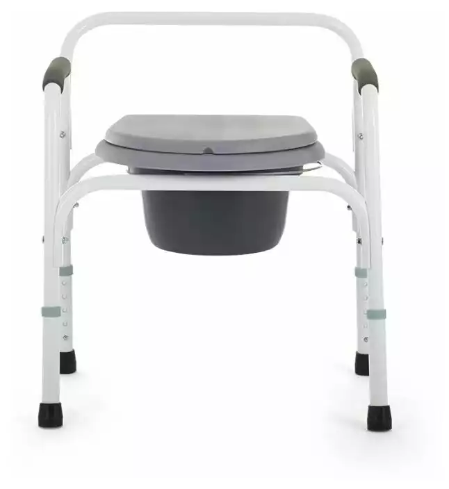 Съемное санитарное оснащение, откидываемая крышка, регулировка высоты сиденья, противоскользящие подлокотники, противоскользящие наконечники ножек