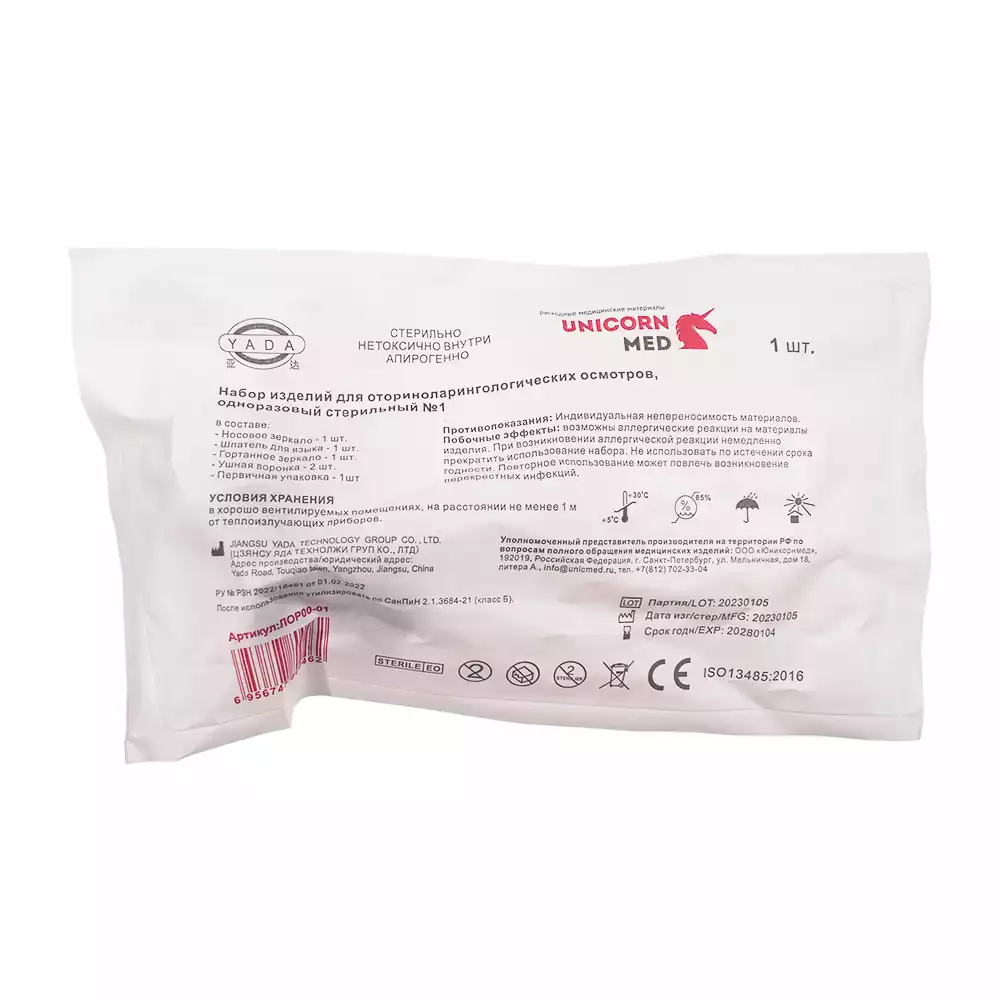 Набор отолорингологический "Яда", 4 предмета, одноразовый, стерильный