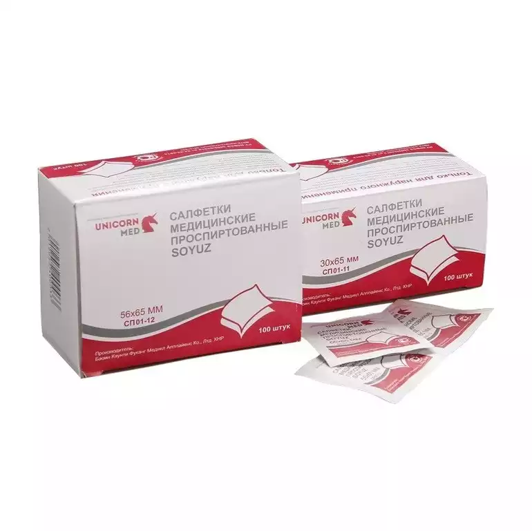 Изготовлена из нетканого материала, пропитанного раствором изопропилового спирта. Содержание спирта в пропитывающем растворе – 70%. Количество пропитывающего состава в салфетке — не менее 0.25-0.3 гр.