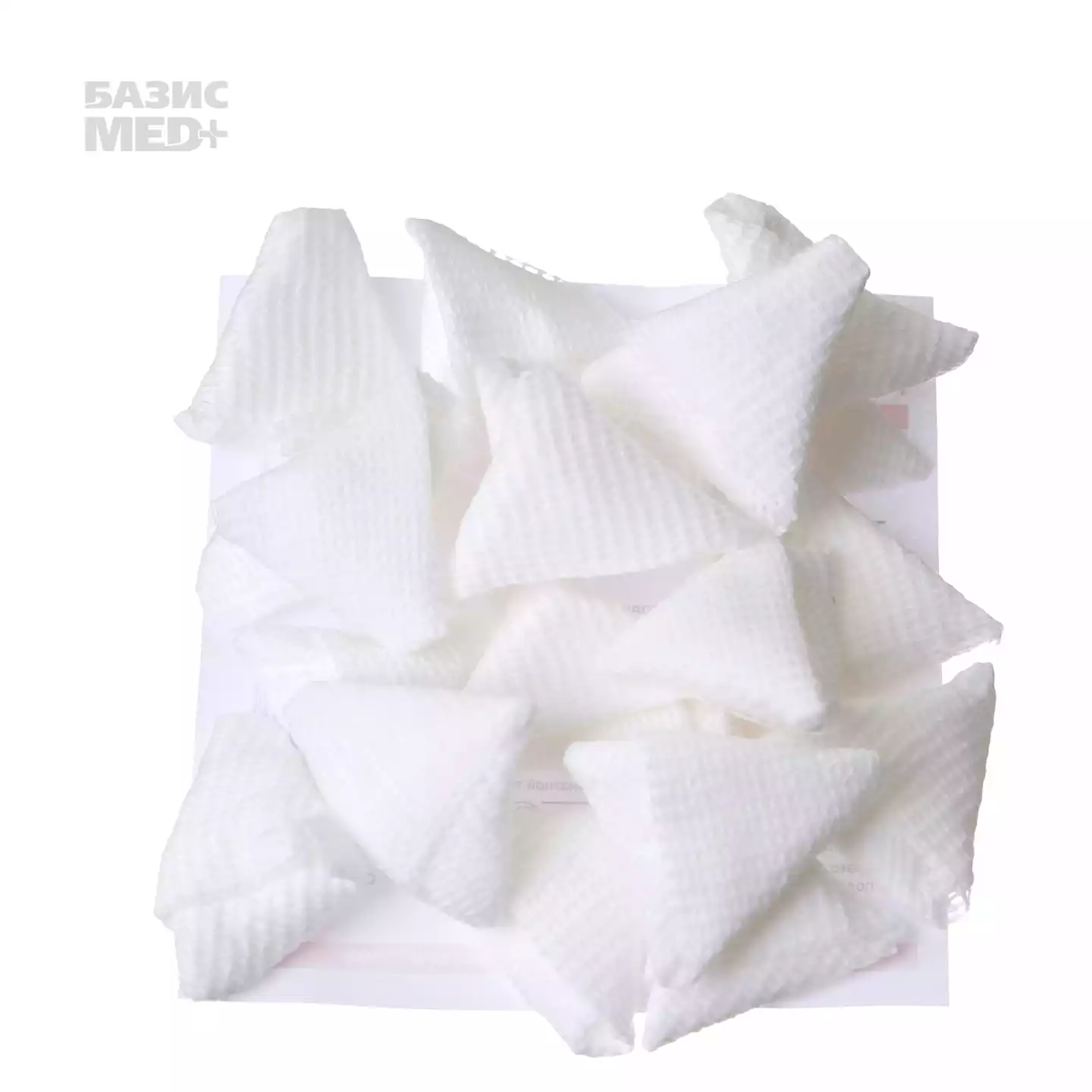 Тампон впитывающий треугольный, размер в свернутом виде 3*3*3мм, материал нетканная марля пл.40г/м2 (сетка), стерильный