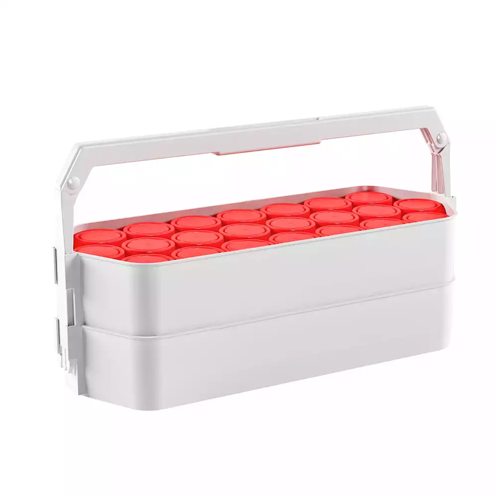Контейнер КПБ-01 предназначен для транспортировки баночек для анализов. Изготовлен из ударостойких, химически стойких, нетоксичных материалов: полистирола, пластика, полиэтилена и полиамида белого цвета.
